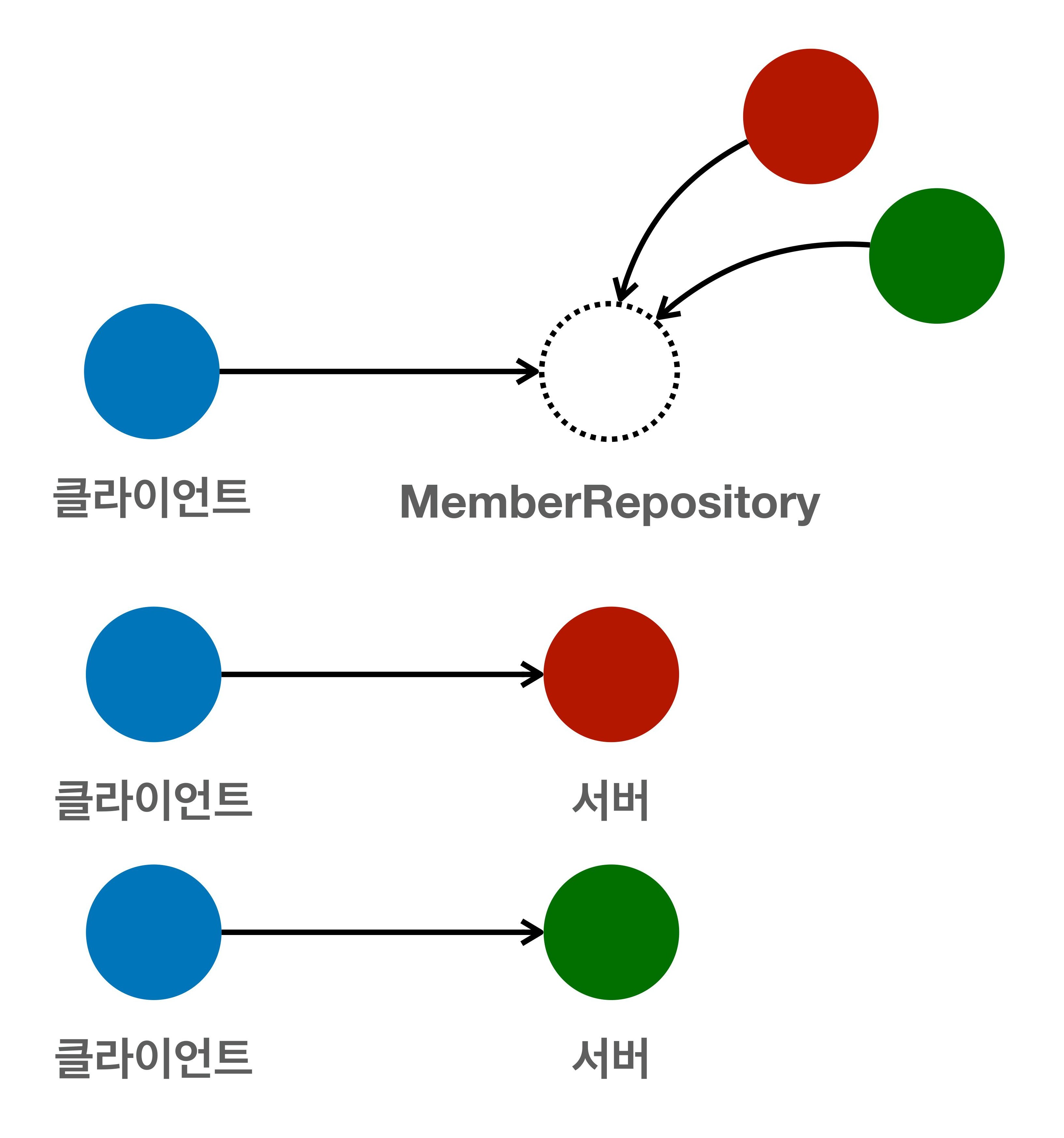 - 클라이언트는 MemberRepository라는 인터페이스만 알고 있다.